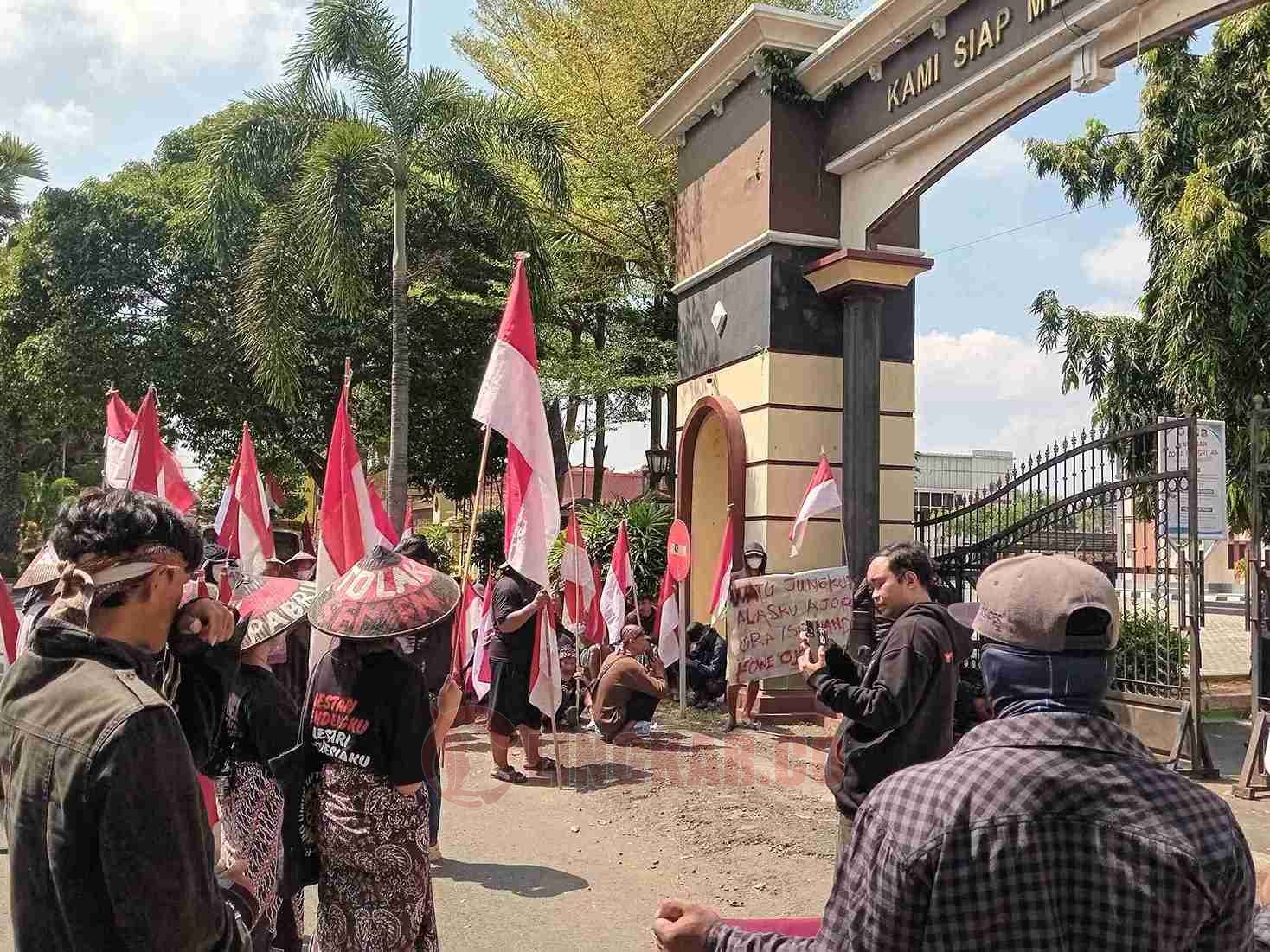 Dengan membawa sejumlah poster berisi tuntutannya, warga yang tergabung dalam “Masyarakat Sukolilo Bangkit” menggelar aksi demonstrasi di depan kantor Polresta Pati, Jawa Tengah pada Senin siang (5/5/2025).