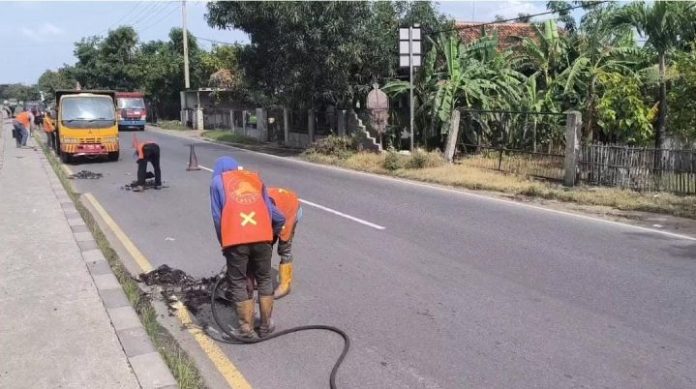 Nurkadi, salah satu pekerja perbaikan jalan mengungkapkan, perbaikan tersebut dilakukan dengan mengganti lapisan aspal dan menambal jalan berlubang.
