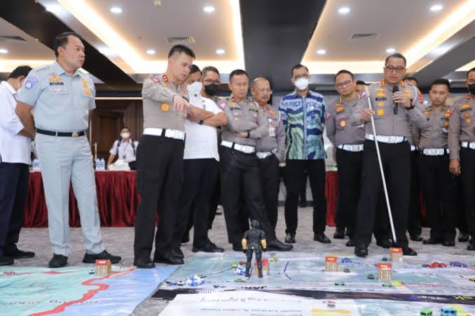 Korps Lalu Lintas (Korlantas) Polri menggelar Tactical Floor Game (TFG) untuk memastikan kesiapan pelaksanaan Operasi Lilin 2024. Kegiatan ini dipimpin langsung oleh Kakorlantas Polri Irjen Pol. Aan Suhanan berlangsung di Aula Madellu Korlantas pada Sabtu (14/12/2024).