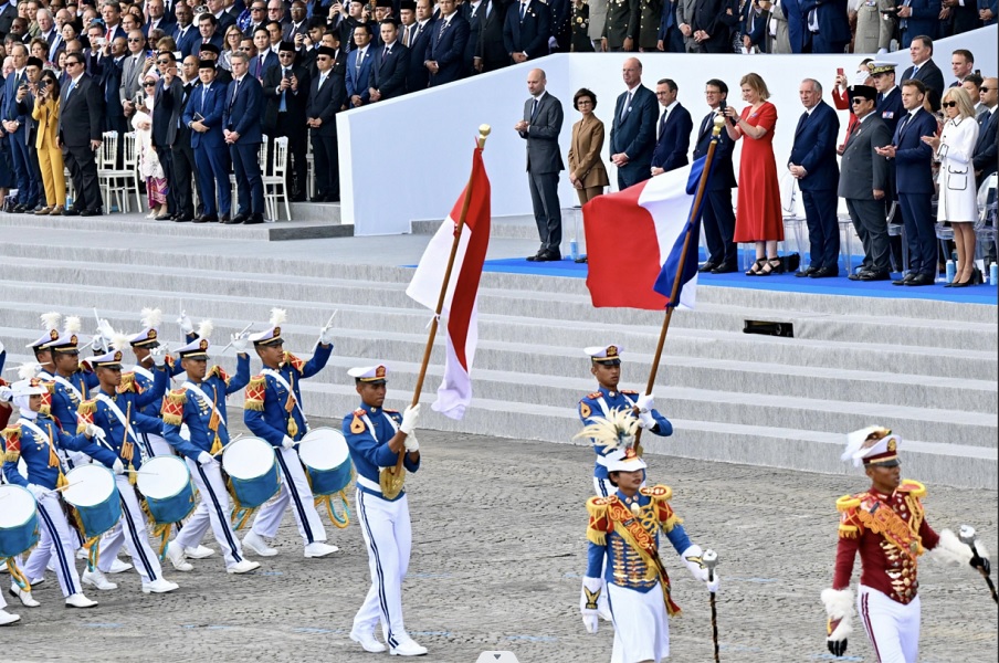 Dalam acara tersebut, TNI hadir sebagai tamu kehormatan dan diberi kesempatan tampil di barisan paling depan parade Bastille Day 2025.