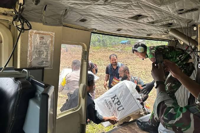Tiga matra TNI yaitu Angkatan Darat, Angkatan Laut, dan TNI Angkatan Udara menyiagakan sejumlah alutsista seperti pesawat angkut, helikopter, dan kapal perang (KRI) untuk membantu KPU di daerah mendistribusikan logistik Pilkada 2024.