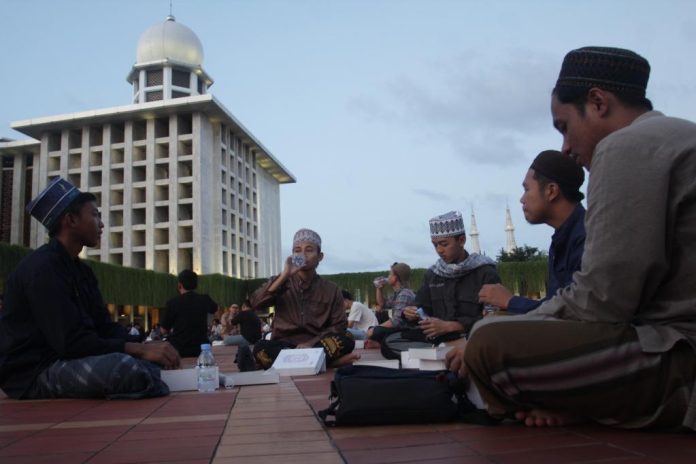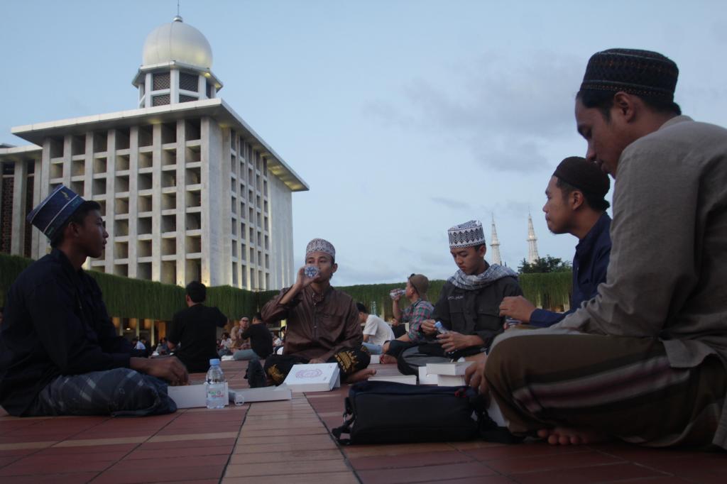Pada pukul 18.00 WIB para jamaah melakukan buka puasa bersama di selasar teras raksasa Masjid Istiqlal. Mereka menerima nasi kotak yang berisi nasi, sayuran, lauk, buah, kurma, dan air mineral.