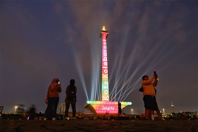 Masyarakat dapat menikmati pemandangan kota Jakarta yang indah dengan lampu-lampunya dari Tugu Monas saat malam hari.