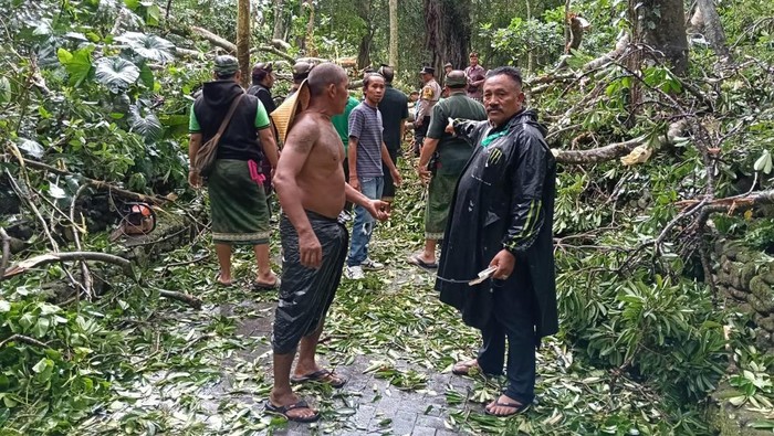 “Ya, saya mendengar suara pohon jatuh setelah dicek ternyata pohon beringin, pohon Pule, dan pohon kresek yang tumbuh di sebelah pura Prajapati obyek Wisata Monkey Forest tumbang ke arah bagian timur, dimana saat itu ada banyak wisatawan berkunjung dan melihat hal tersebut kemudian para wisatawan berlarian menyelamatkan diri, namun ada beberapa orang wisatawan yang tertimpa pohon,” katanya.