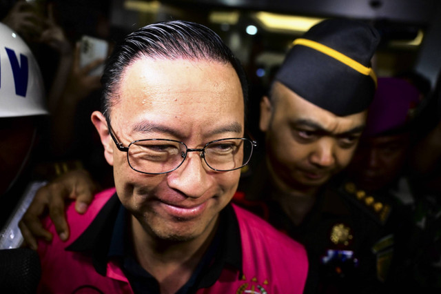 Usai menjalani sidang perdananya, Thomas Trikasih Lembong, langsung dikawal ketat petugas Kejaksaan dan Kepolisian saat keluar dari ruang sidang.